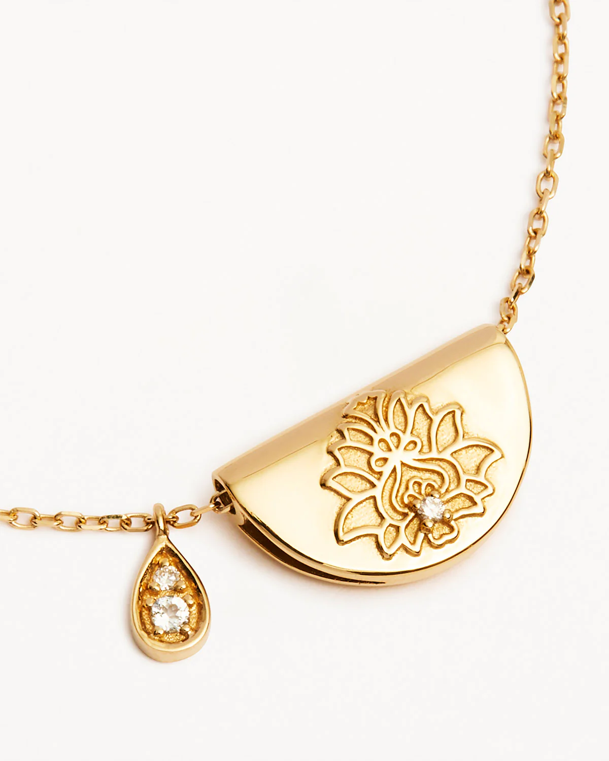 Engraved with “Shine Brightly”, discover our 14k Gold Lotus Birthstone Diamond Necklace - April. Adorned with a dazzling white topaz gemstone and our signature lotus motif, this forever keepsake invites positivity and joy. This radiant piece has been meticulously crafted as the perfect everyday necklace: equal parts delicate, bold and meaningful.