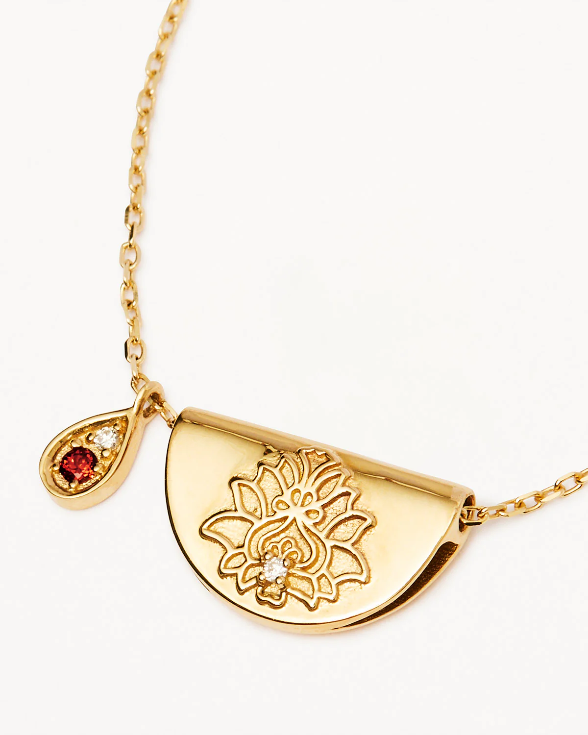 Engraved with “Love and be loved”, discover our 14k Gold Lotus January Birthstone Diamond Necklace, an everlasting tribute to the magic within you. Adorned with our signature lotus flower and the January birthstone, garnet, this forever piece symbolises the beauty of new beginnings. Wear this delicate necklace and be reminded of the virtues you were born to share with the world.