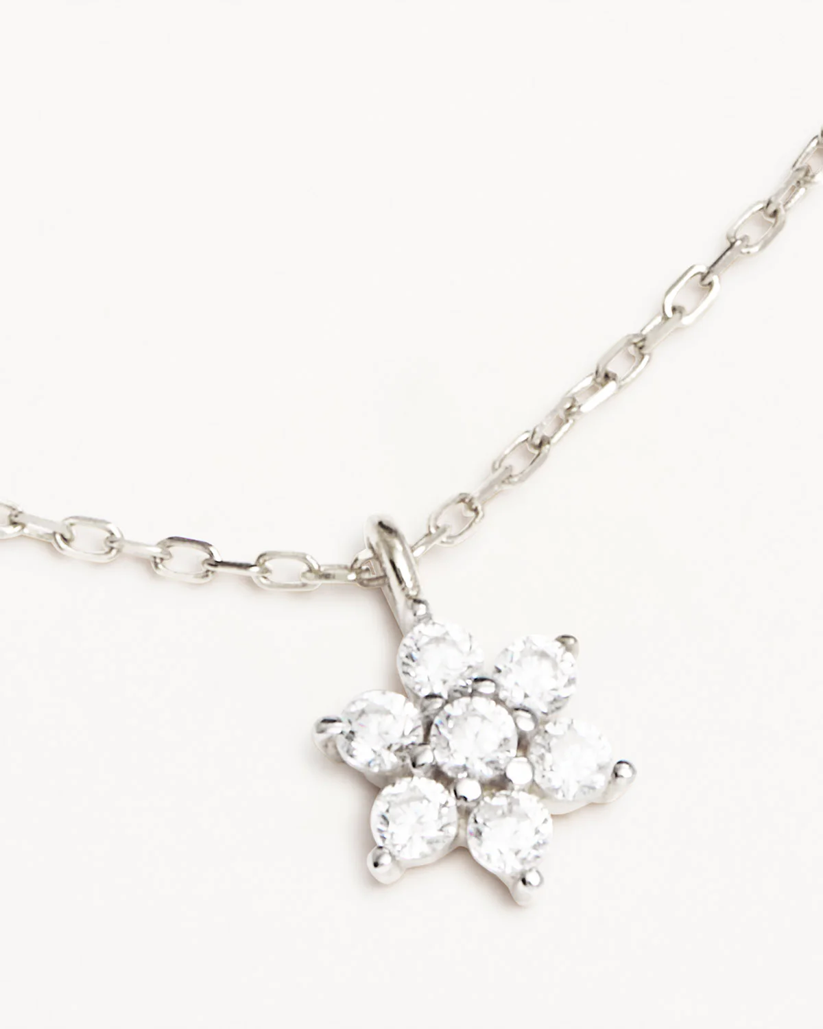 14k Solid White Gold Crystal Lotus Flower Necklace