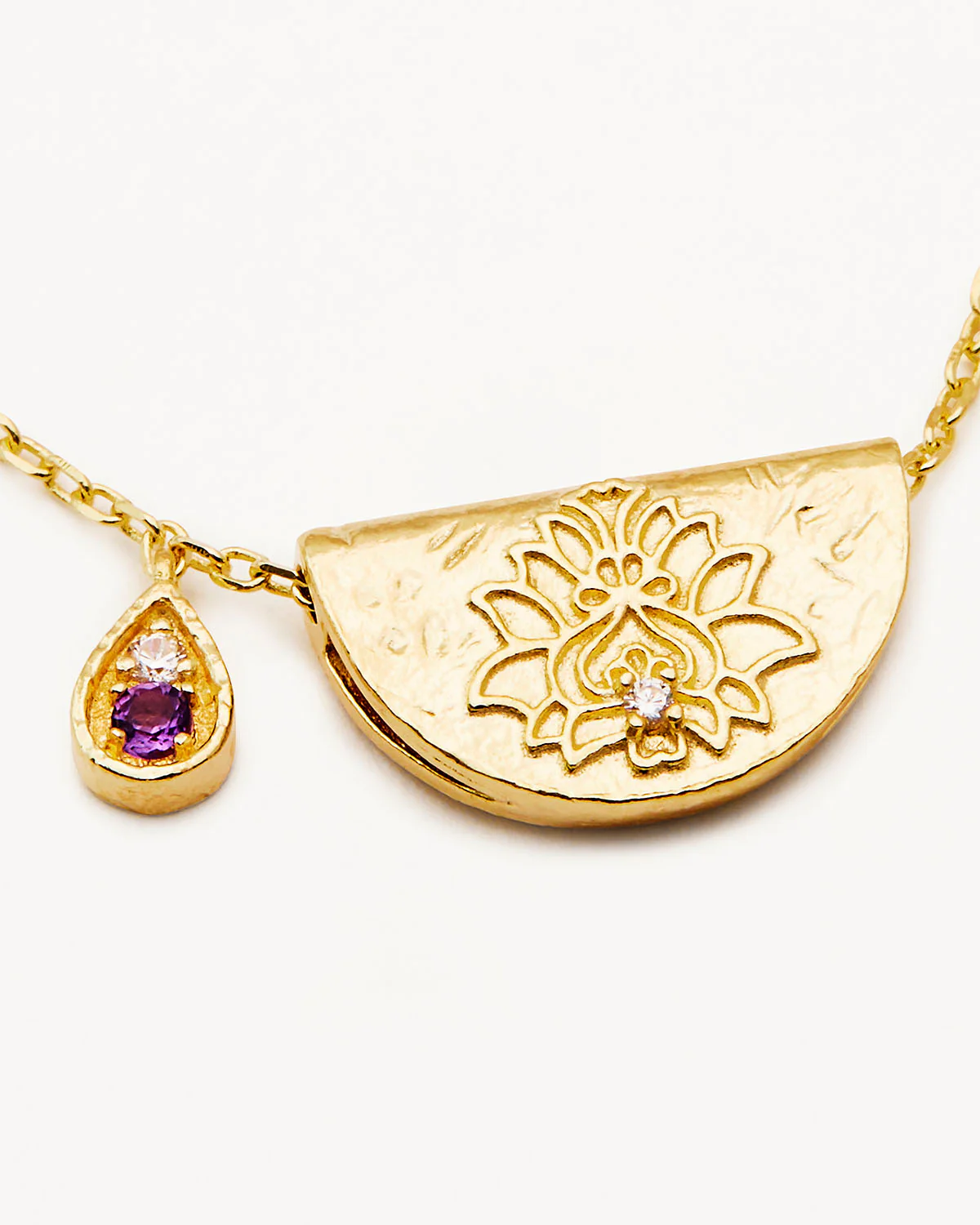 18k Gold Vermeil Lotus Birthstone Necklace - February - Amethyst