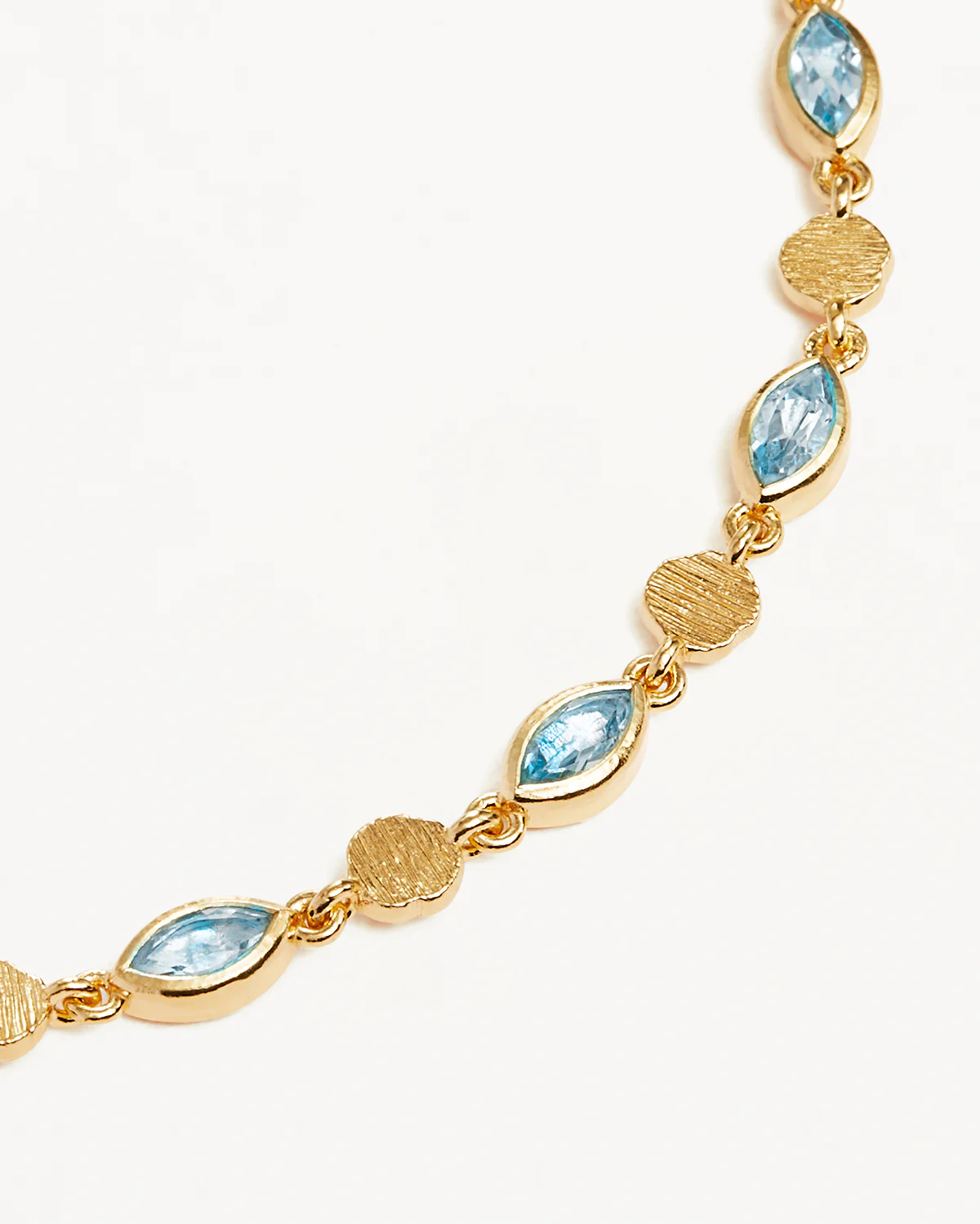 Adorn yourself in our 18k Gold Vermeil Protection of Eye Bracelet to protect your spirit from forces that may compromise your sense of self. Featuring natural marquise cut blue topaz and textured gold coin links, this radiant keepsake has been cast, assembled and soldered by hand. Reminiscent of the evil eye, allow the blue topaz to wash calmness over you as you navigate your unique journey with confidence.
