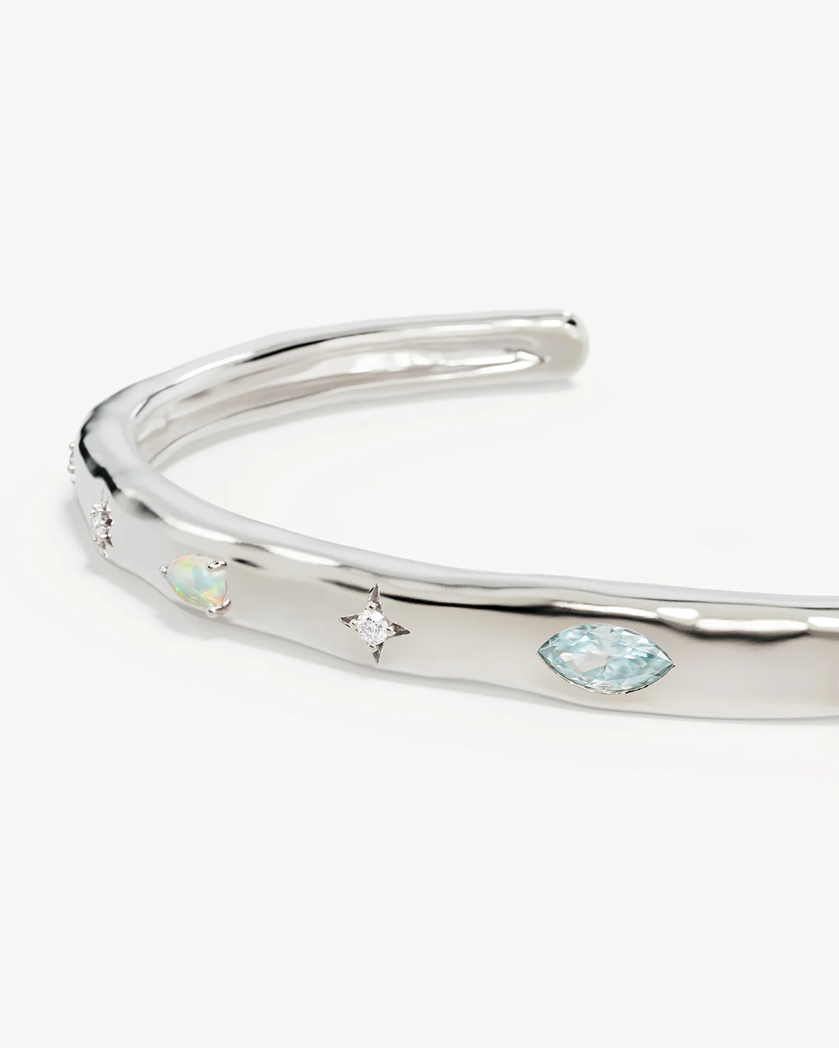 Set with sky blue and white cubic zirconias and lab-grown opals.