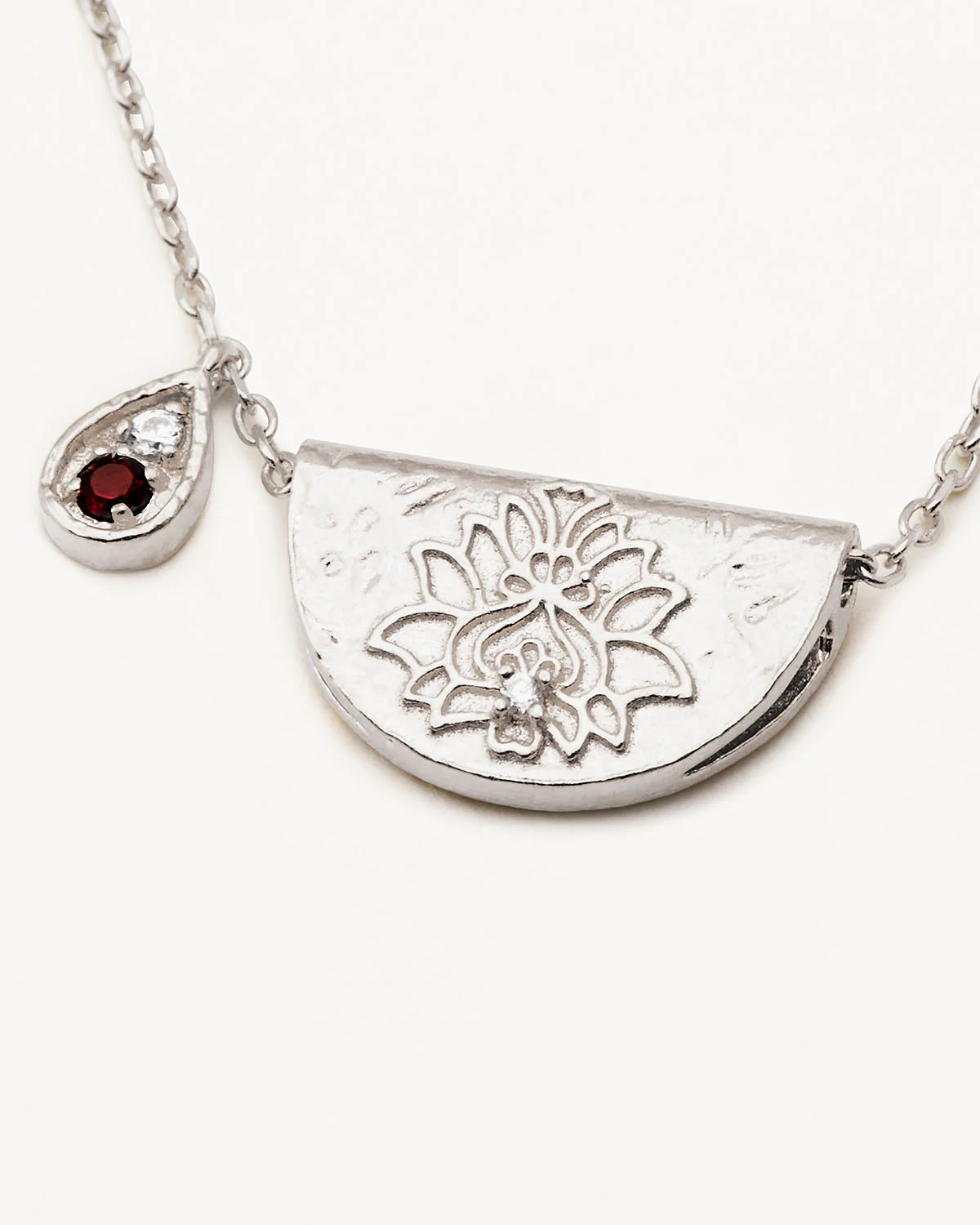 Sterling Silver Lotus Birthstone Necklace - January - Garnet