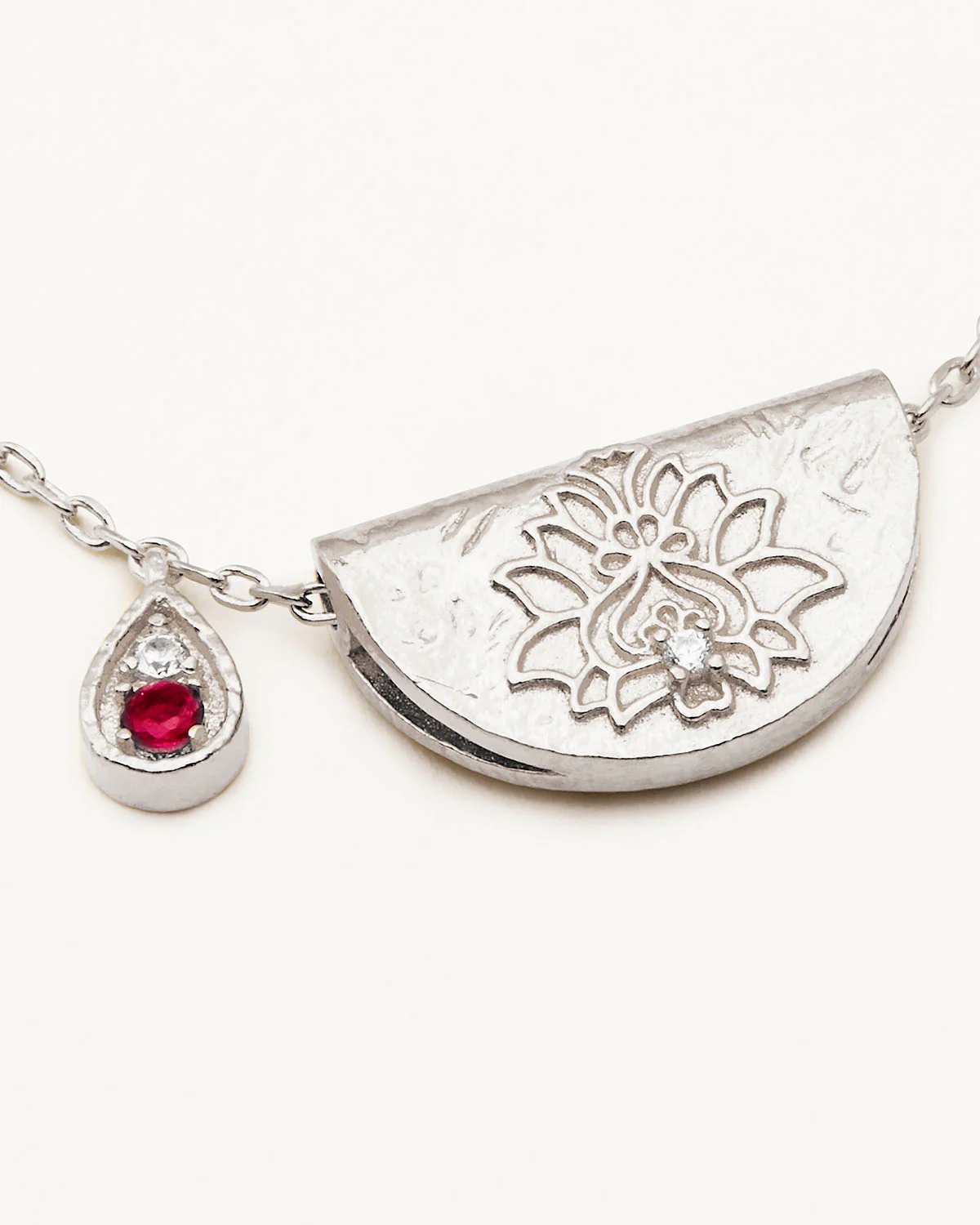 Sterling Silver Lotus Birthstone Necklace - July - Ruby